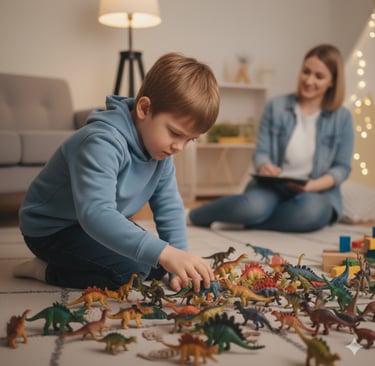 Interesse em Figuras de Ação/Colecionáveis: Use as figuras para encenar interações sociais complexas, trabalhando habilidades de dramatização e teoria da mente.