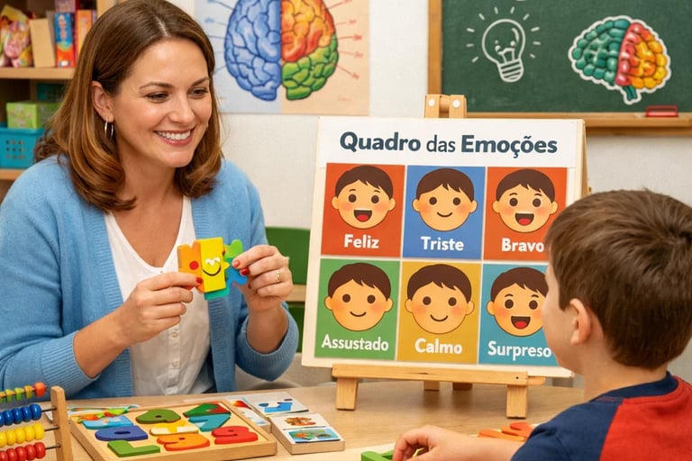 A intervenção psicopedagógica para alunos com TEA foca nos processos de aprendizagem e nas barreiras que podem impedir a absorção de conhecimento. O psicopedagogo atua na mediação entre o sujeito e o objeto de aprendizagem, desenvolvendo estratégias personalizadas que respeitam o ritmo e o estilo cognitivo de cada criança. O trabalho envolve o estímulo às funções executivas, como memória, atenção e planejamento, fundamentais para o sucesso escolar. Além disso, busca adaptar conteúdos curriculares e criar materiais didáticos específicos que tornem o ensino mais concreto e funcional, garantindo que o aprendizado seja uma experiência positiva e inclusiva.